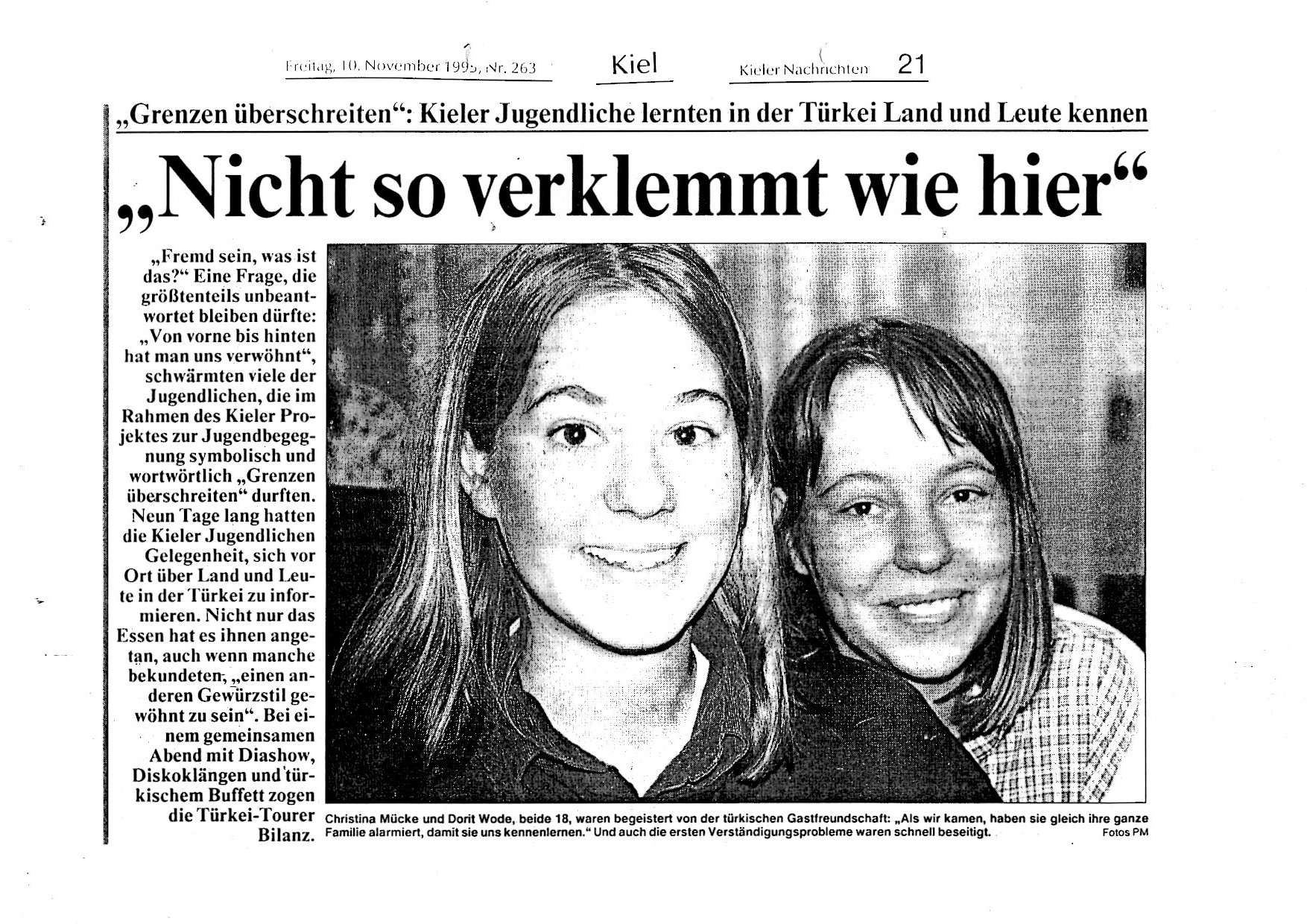 Zeitungsartikel über das Jugendaustausch Projekt "Grenzen überschreiten" 1995 - 2001
